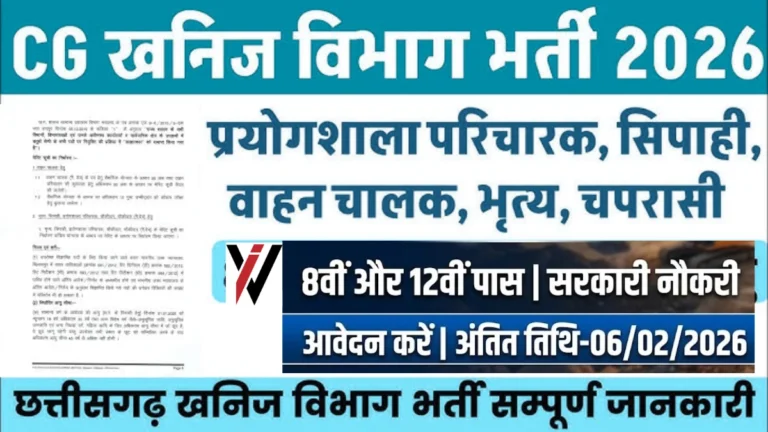 छत्तीसगढ़ सरकार के अंतर्गत आने वाले खनिज विभाग (Department of Mining, Chhattisgarh) ने वर्ष 2026 के लिए नई भर्ती प्रक्रिया …