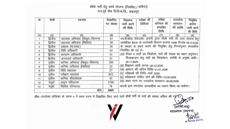 मध्य प्रदेश पश्चिम क्षेत्र विद्युत वितरण कंपनी लिमिटेड (MPPKVVCL) ने राज्य के युवाओं के लिए एक शानदार करियर का अवसर …