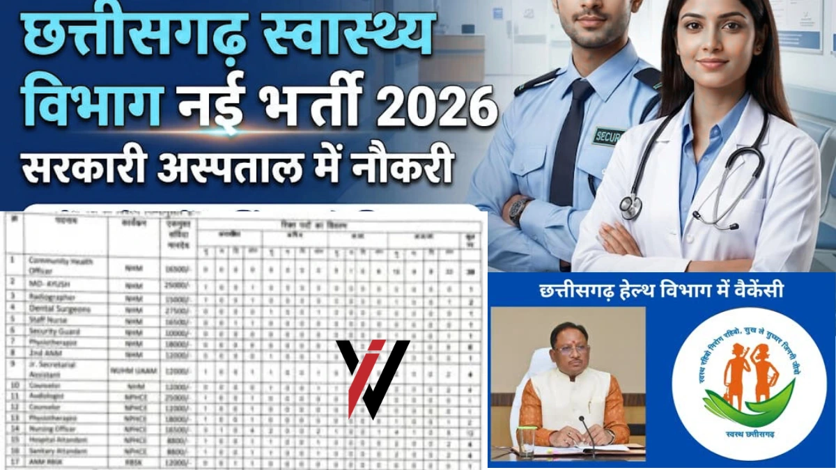 छत्तीसगढ़ स्वास्थ्य विभाग (CG Health Department) ने 2026 में सरकारी स्वास्थ्य सेवाओं में अनेक पदों पर भर्ती प्रक्रिया शुरू की है। यह भर्ती राज्य के विभिन्न स्वास्थ्य केन्द्रों तथा सरकारी अस्पतालों में कर्मचारियों की कमी को पूरा करने के उद्देश्य से की जा रही है। इस भर्ती के माध्यम से स्वास्थ्य सेवाओं को मजबूत बनाना और स्थानीय युवाओं को सरकारी नौकरी का मौका देना लक्ष्य है।