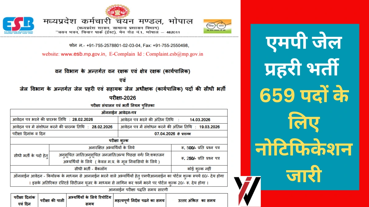 एमपी जेल प्रहरी भर्ती 2026:659 पदों के लिए नोटिफिकेशन जारी | mp jail prahari recruitment 2026 | Jail Prahari Exam Date 2026
