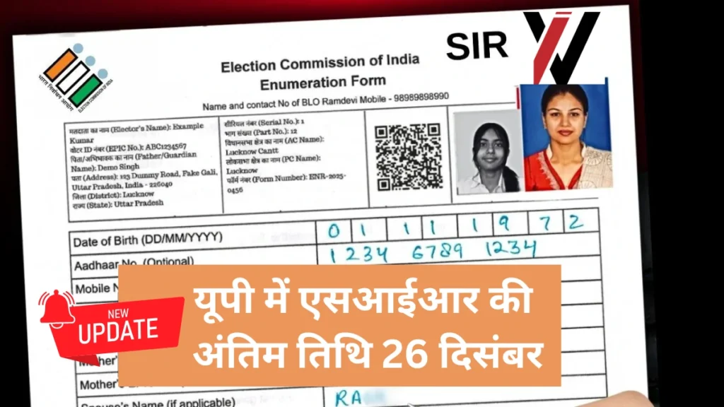 उत्तर प्रदेश में चल रही विशेष गहन पुनरीक्षण (एसआईआर) प्रक्रिया के तहत मतदाता सूची को अद्यतन और शुद्ध किया जा रहा है।