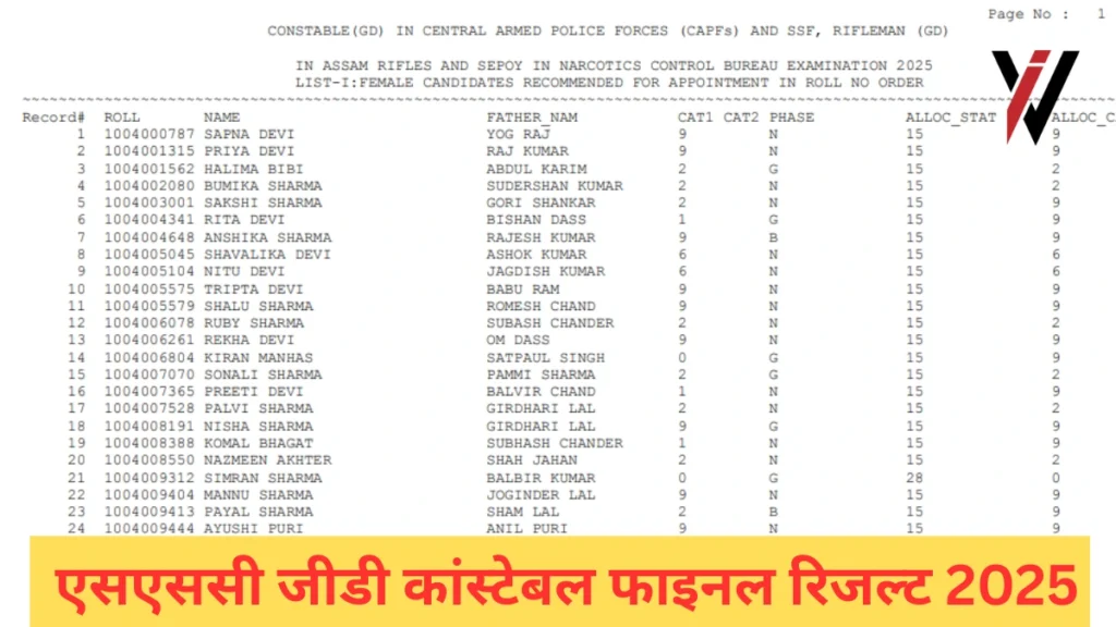कर्मचारी चयन आयोग (एसएससी) ने जनरल ड्यूटी (जीडी) कॉन्स्टेबल भर्ती 2025 का अंतिम परिणाम जारी कर दिया है। इस ऐतिहासिक