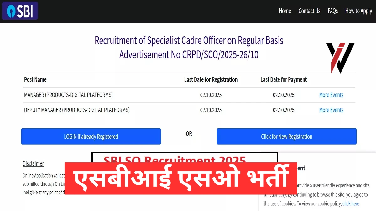 भारतीय स्टेट बैंक (SBI) ने विभिन्न विशेषज्ञ पदों पर भर्ती के लिए नए सिरे से आवेदन मांगे हैं। अब स्पेशलिस्ट ऑफिसर (SO) भर्ती 2025 के लिए ऑनलाइन आवेदन की अंतिम तिथि बढ़ाकर 5 जनवरी 2026 कर दी गई है। इस भर्ती के अंतर्गत कुल 996 रिक्तियां हैं।