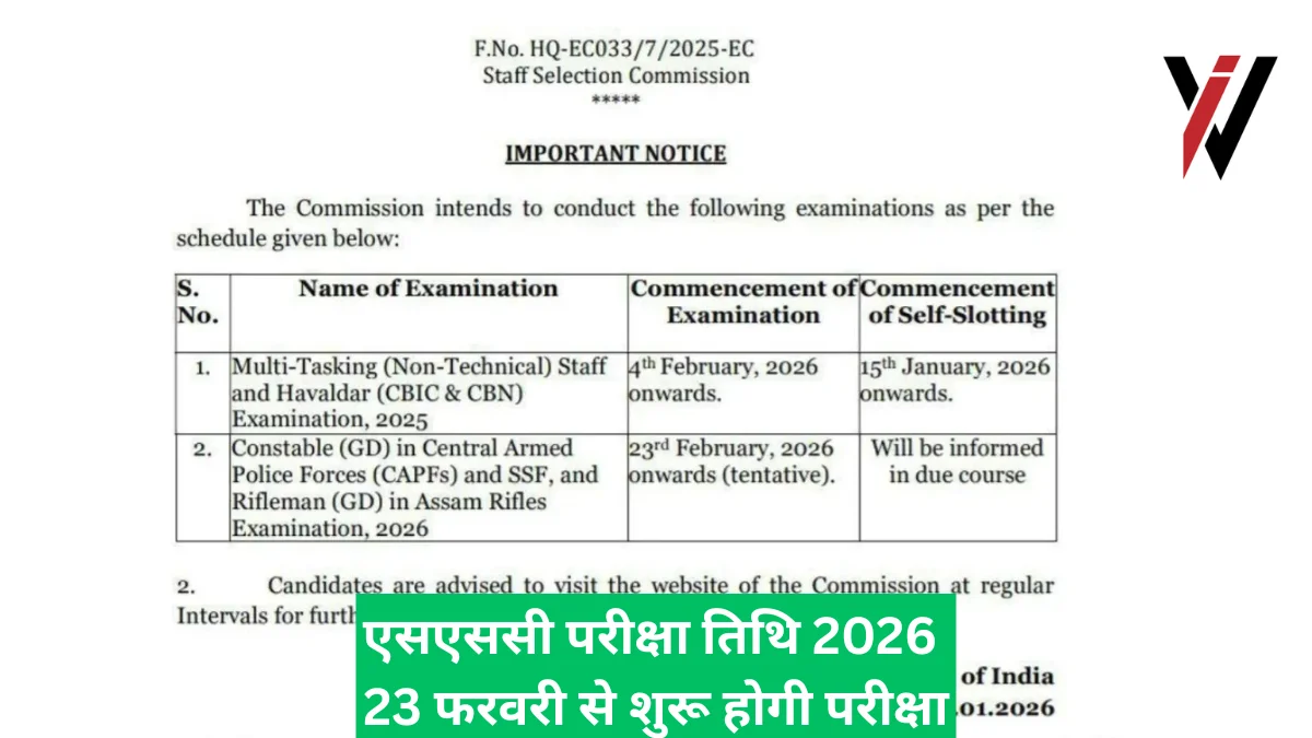 कर्मचारी चयन आयोग (एसएससी) ने मल्टी-टास्किंग स्टाफ (एमटीएस) एवं हवलदार पदों की भर्ती परीक्षा 2025 की आधिकारिक तिथियों की घोषणा कर दी है। कंप्यूटर आधारित इस परीक्षा का आयोजन 4 फरवरी, 2026 से शुरू होगा। सबसे महत्वपूर्ण बात यह है कि अब उम्मीदवारों को अपनी सुविधा से परीक्षा तिथि और केंद्र चुनने का अवसर मिलेगा, क्योंकि स्व-स्लॉट बुकिंग की प्रक्रिया 15 जनवरी, 2026 से प्रारंभ होगी।