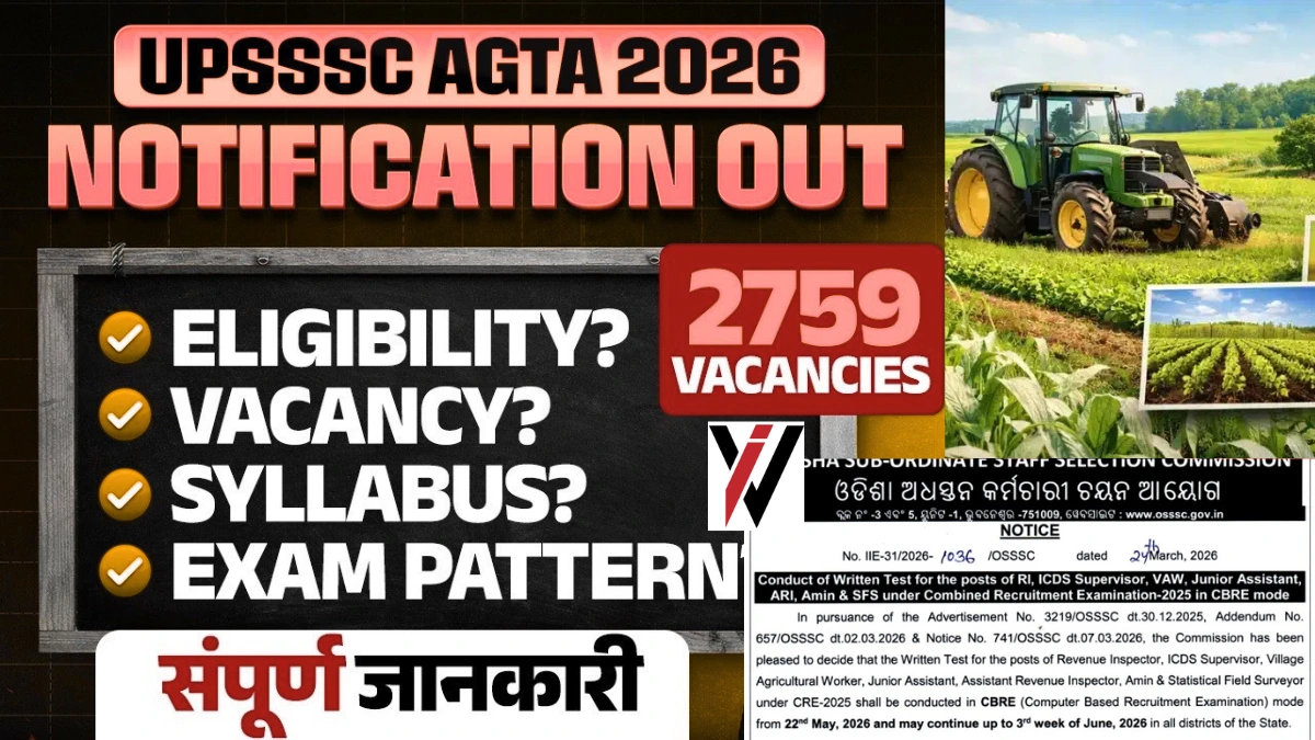 लखनऊ: उत्तर प्रदेश अधीनस्थ सेवा चयन आयोग (UPSSSC) ने कृषि तकनीकी सहायक (एजीटीए) ग्रुप-सी पदों पर बड़ी भर्ती के लिए अधिसूचना जारी कर दी है। विज्ञापन संख्या 06-परीक्षा/2026 के तहत कुल 2759 रिक्तियों के लिए ऑनलाइन आवेदन 22 मई 2026 से शुरू होंगे। यह भर्ती उत्तर प्रदेश के कृषि विभाग के अंतर्गत तकनीकी सहायक के पदों पर की जाएगी, जो युवाओं के लिए सरकारी नौकरी पाने का एक सुनहरा अवसर है।